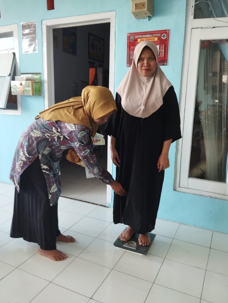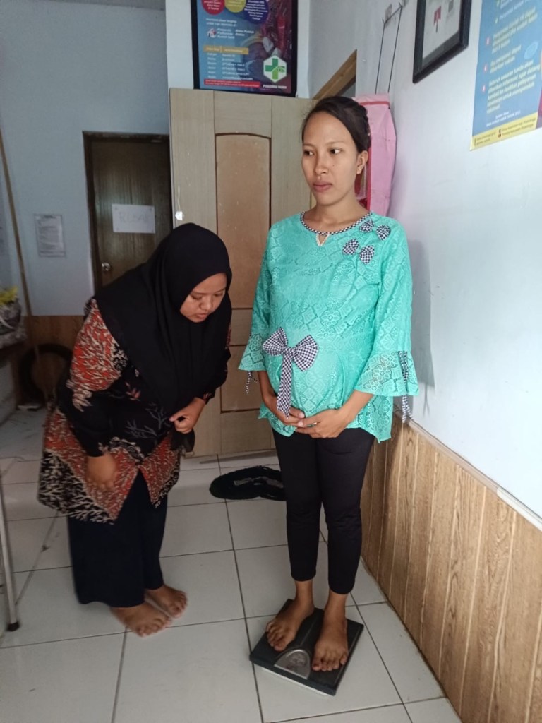 Dokumentasi pendampingan bumil risti dengan kader Ika fatmawati pada bumil atas nama ny Siti utari dengan skor 10 ( KEK + ROB ) pada bulan agustus tahun 2024 ( PENDAMPINGAN DANA BANPROV )