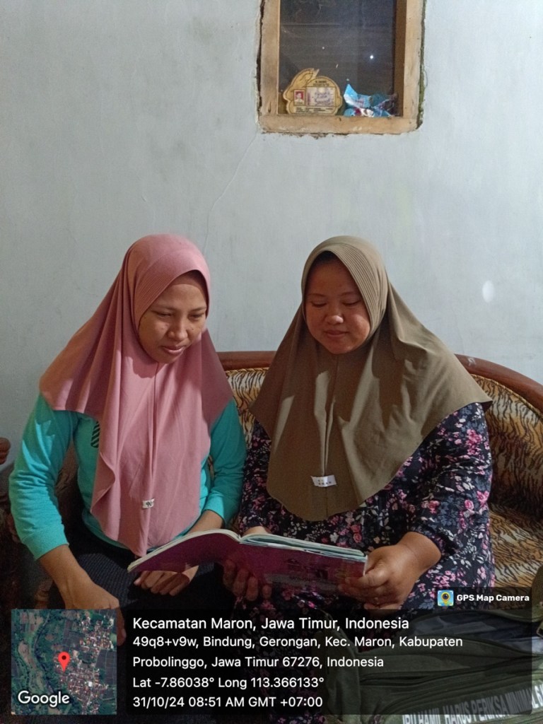 Dokumentasi pendampingan bumil risti dengan kader Ika fatmawati pada bumil atas nama ny Siti utari dengan skor 10 ( KEK + ROB ) pada bulan OKTOBER tahun 2024 ( PENDAMPINGAN DANA BANPROV )